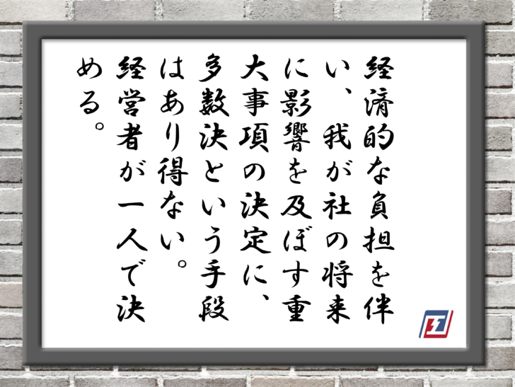 経済的な負担を伴い、我が社の将来に影響を及ぼす重大事項の決定に、多数決という手段はありません。経営者が一人で決めるのです。